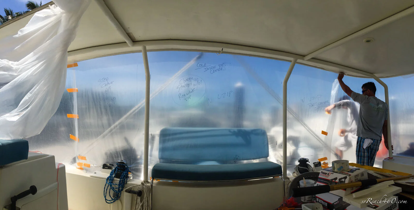 Side panels & Walk-ways: Starting at the sides and going aft, Strataglass was used for the clears. Each first section continues the dodger aspect followed by a side panel with u-zip for air flow.