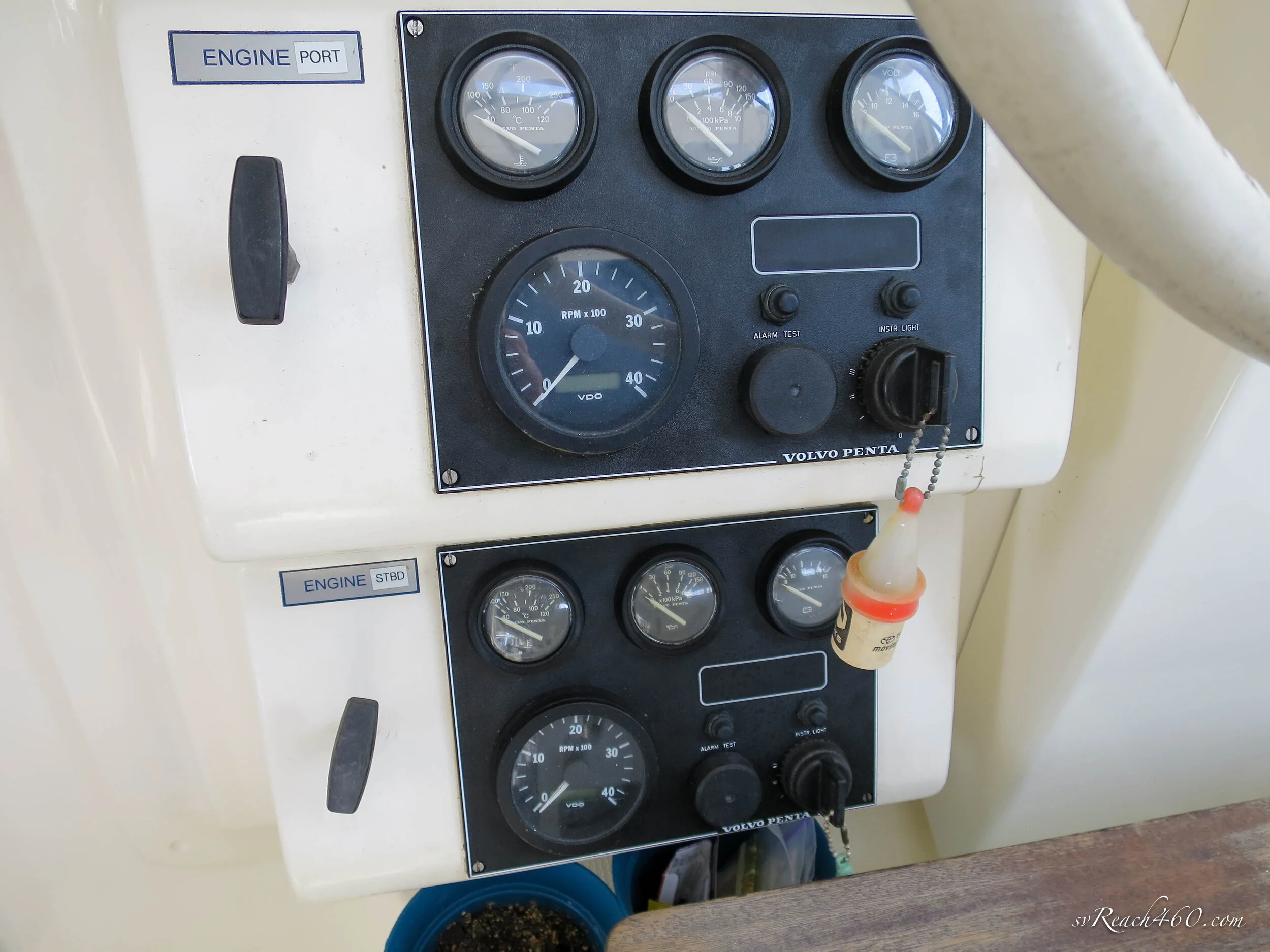 Replace all fuel lines from diesel tanks (forward, next to mast) to engines (aft) ~ remove old, brittle lines!
